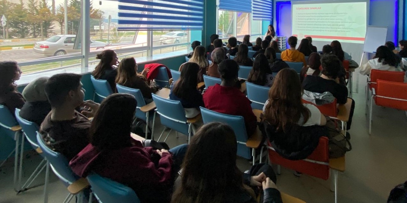 Ezine Gıda İhtisas OSB MYO’dan Dr. Öğr. Üyesi Aslı Bek, Çanakkale Barosu Kadın Hakları Komisyonu Başkanı Av. Yeşim Şimşek ve Gençlik Spor İl Müdürlüğünden Psk. Aslı Baş Kaşıkcıoğlu’nun konuşmacı olarak katıldığı etkinliğe çok sayıda öğrenci katılım gösterdi.